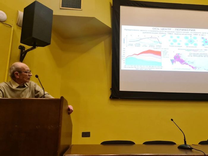Основным вопросом повестки стал научный доклад «Социально-экономическое пространство современной России: основные оси развития» (докладчики д.г.н. НЕФЕДОВА Т.Г., к.г.н. ТРЕЙВИШ А.И. (ИГ РАН)